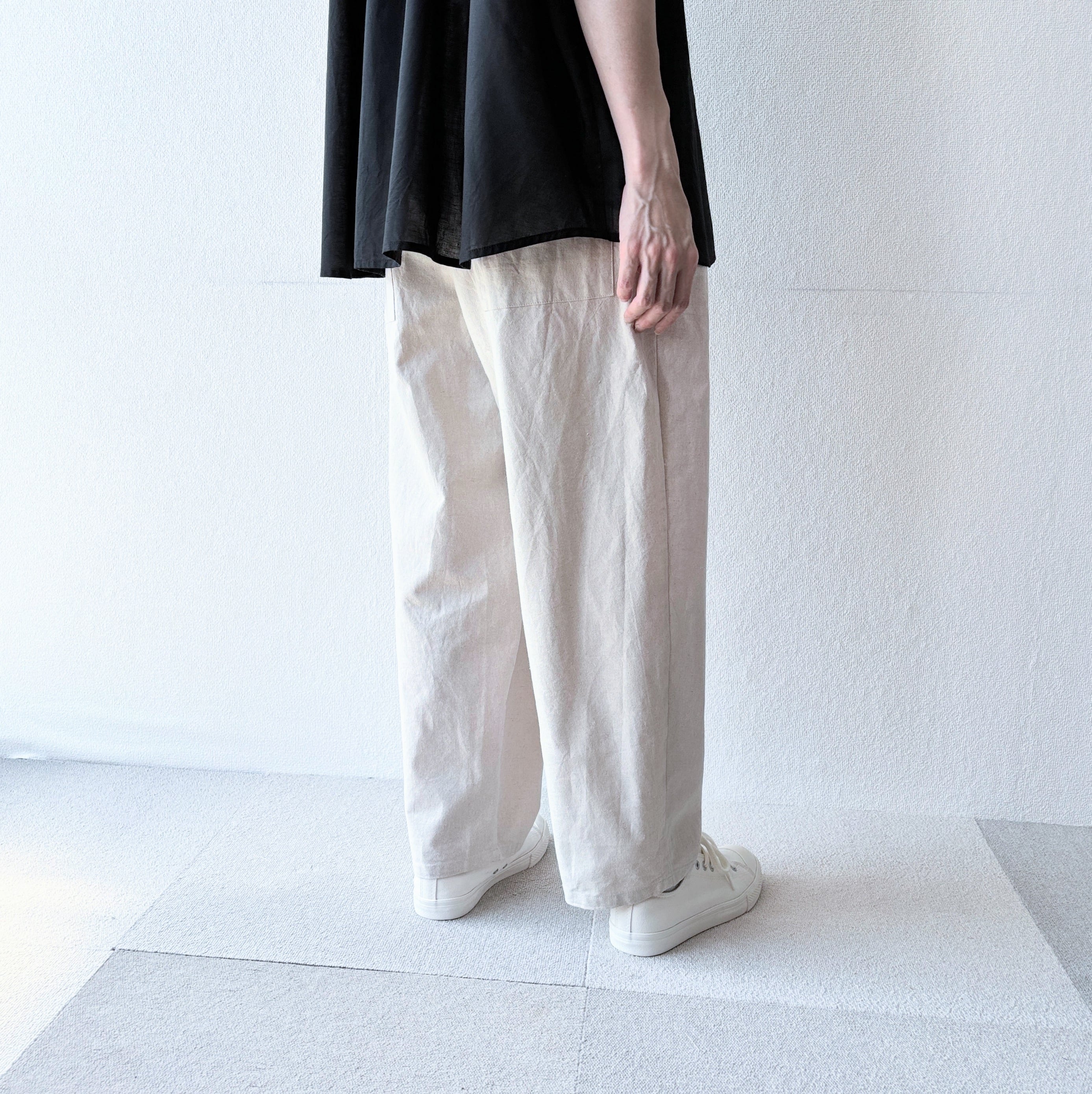 綿麻キャンパスのワンタックイージーパンツ