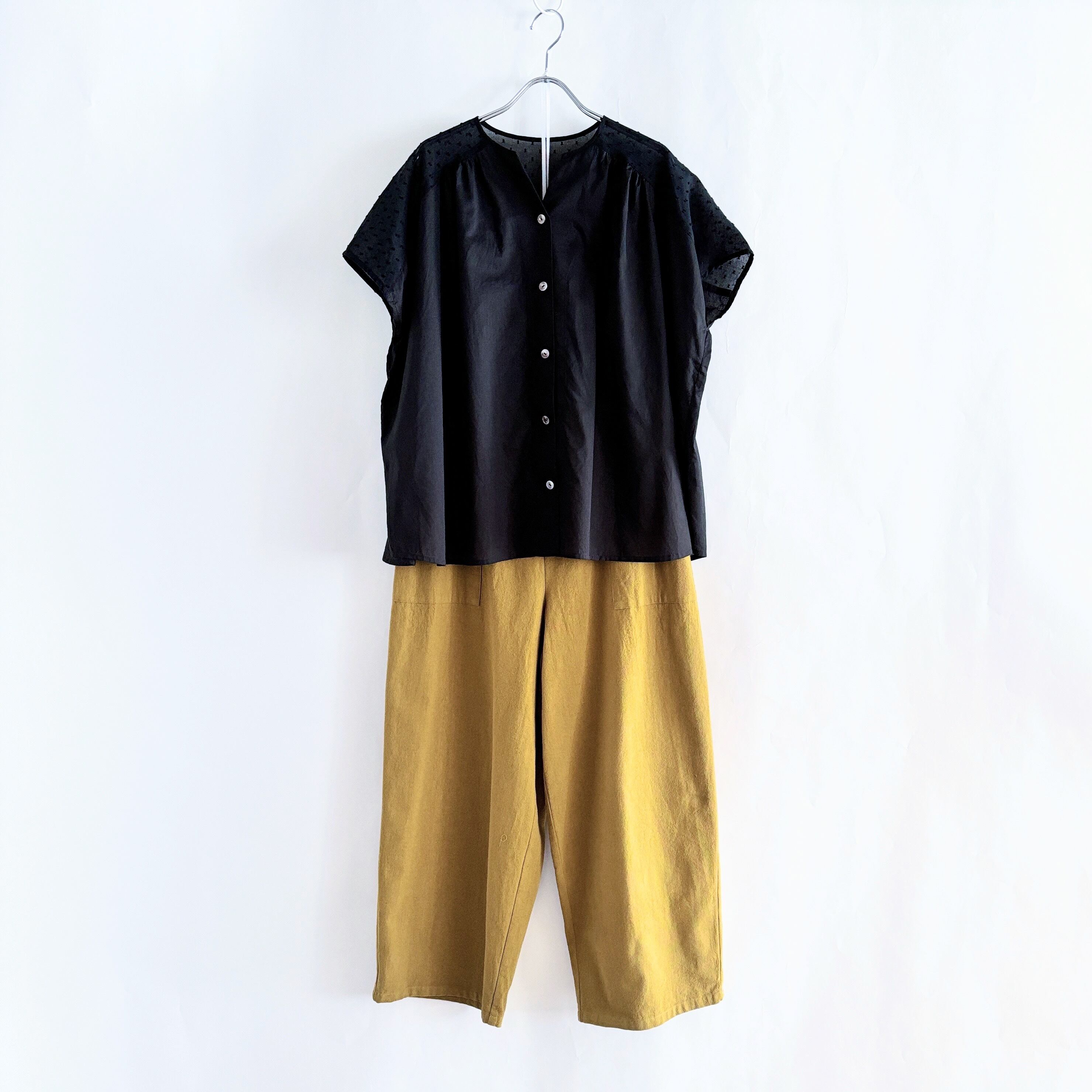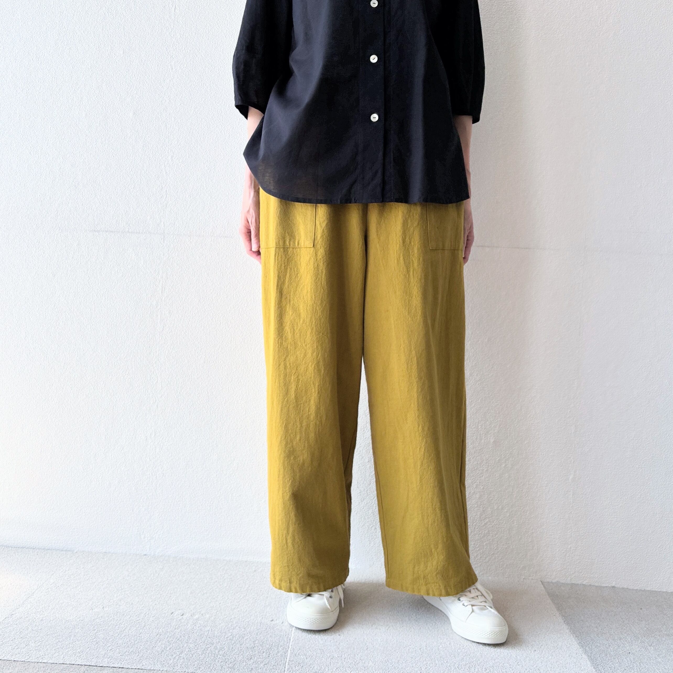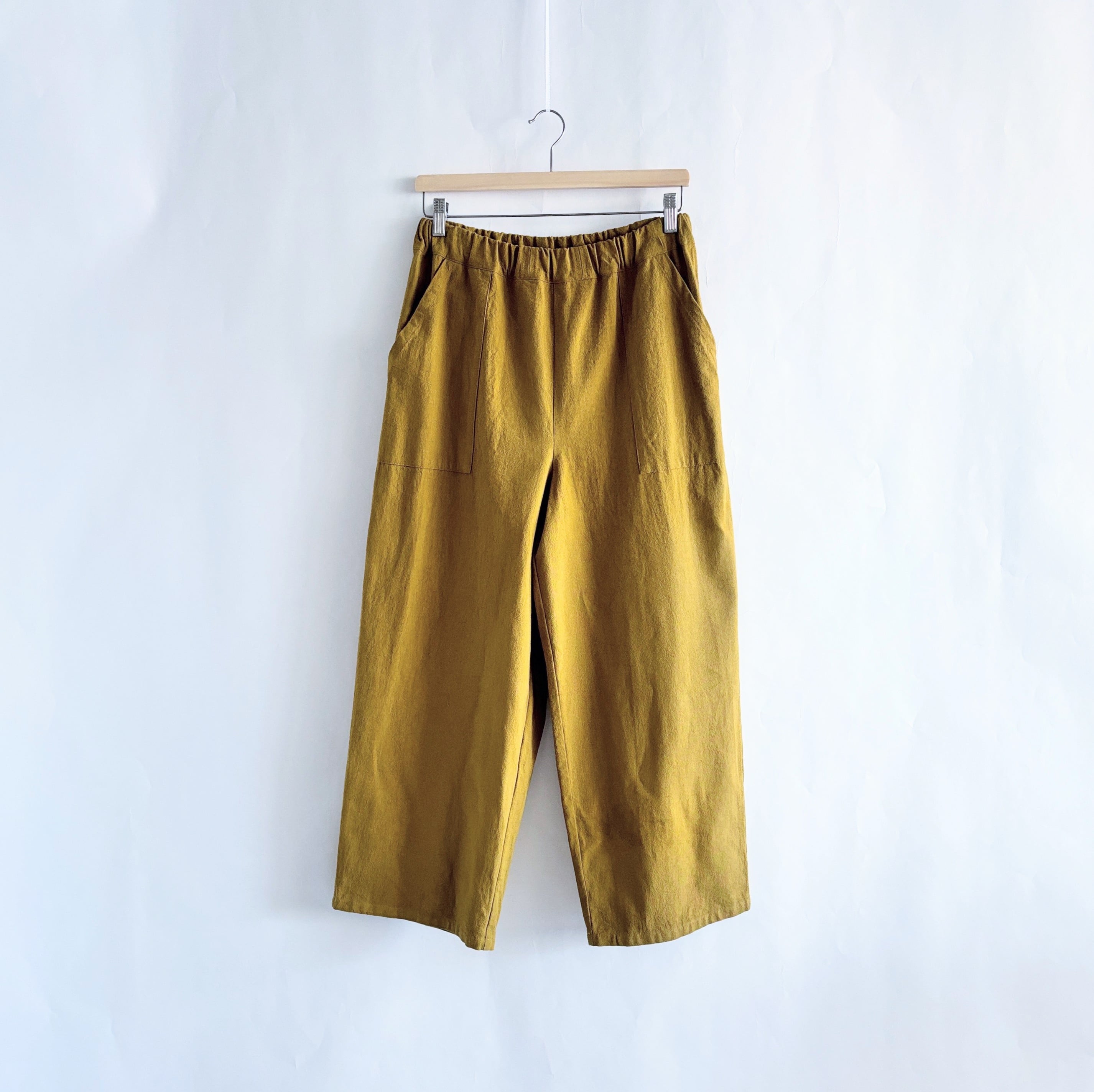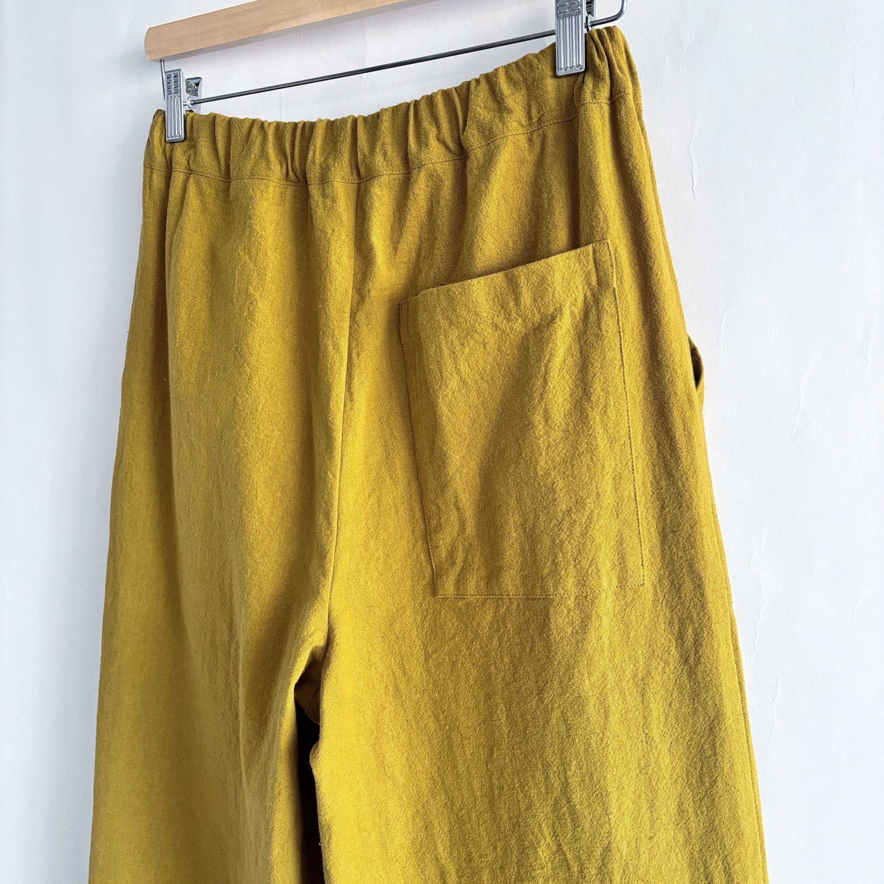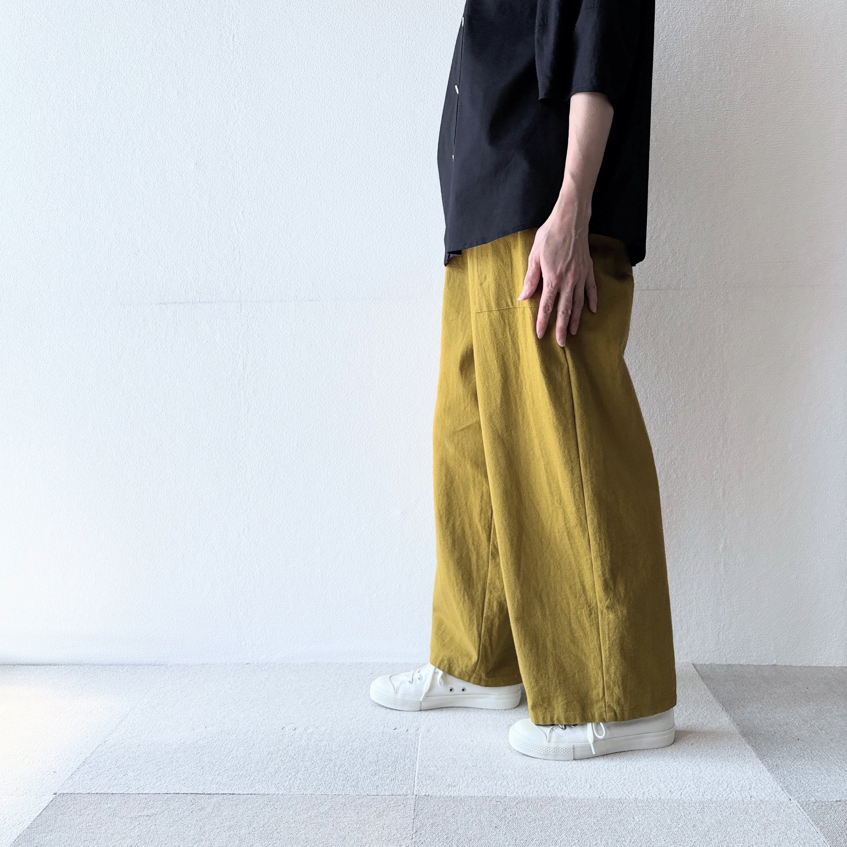 グリーンがかったマスタードカラーの存在感があるパンツです