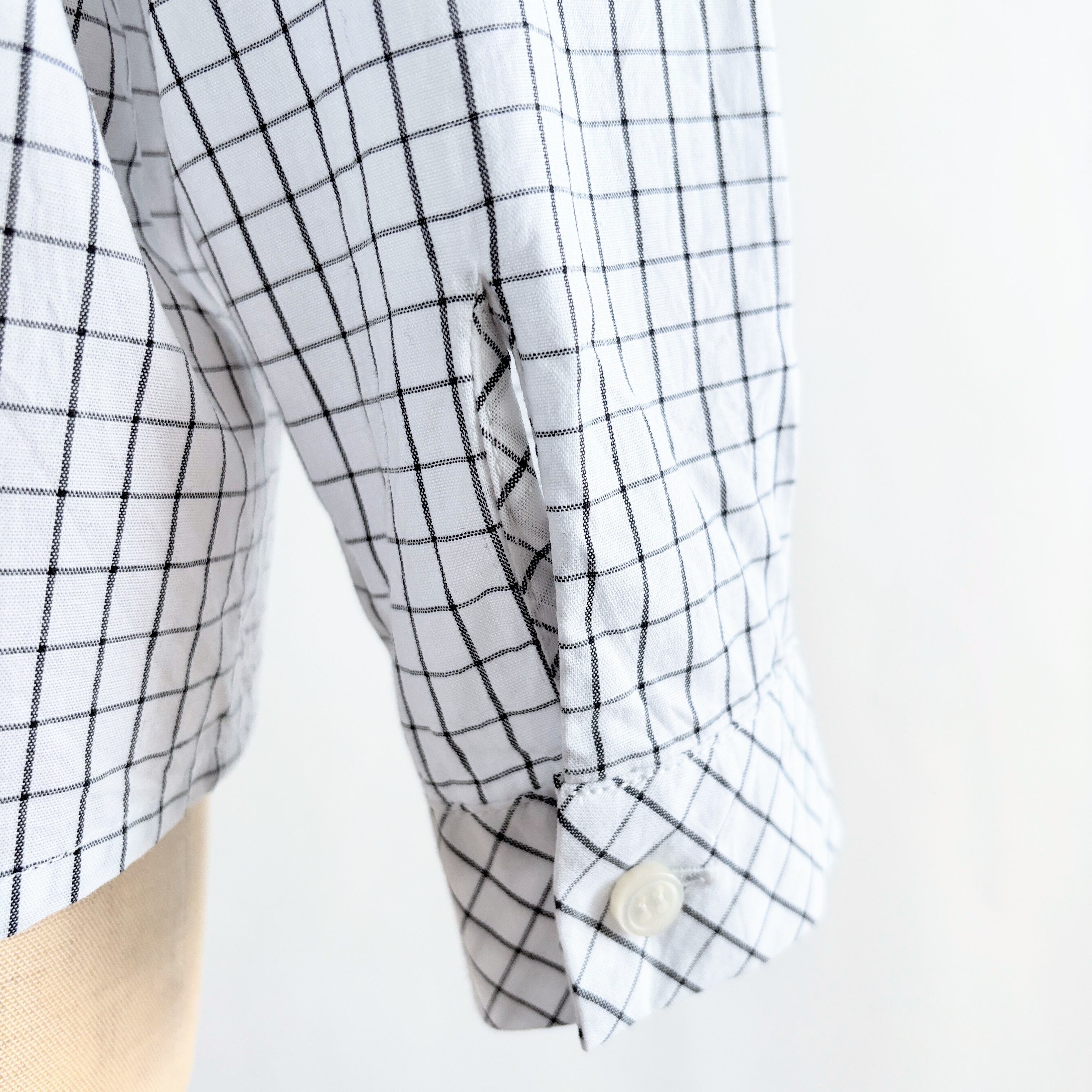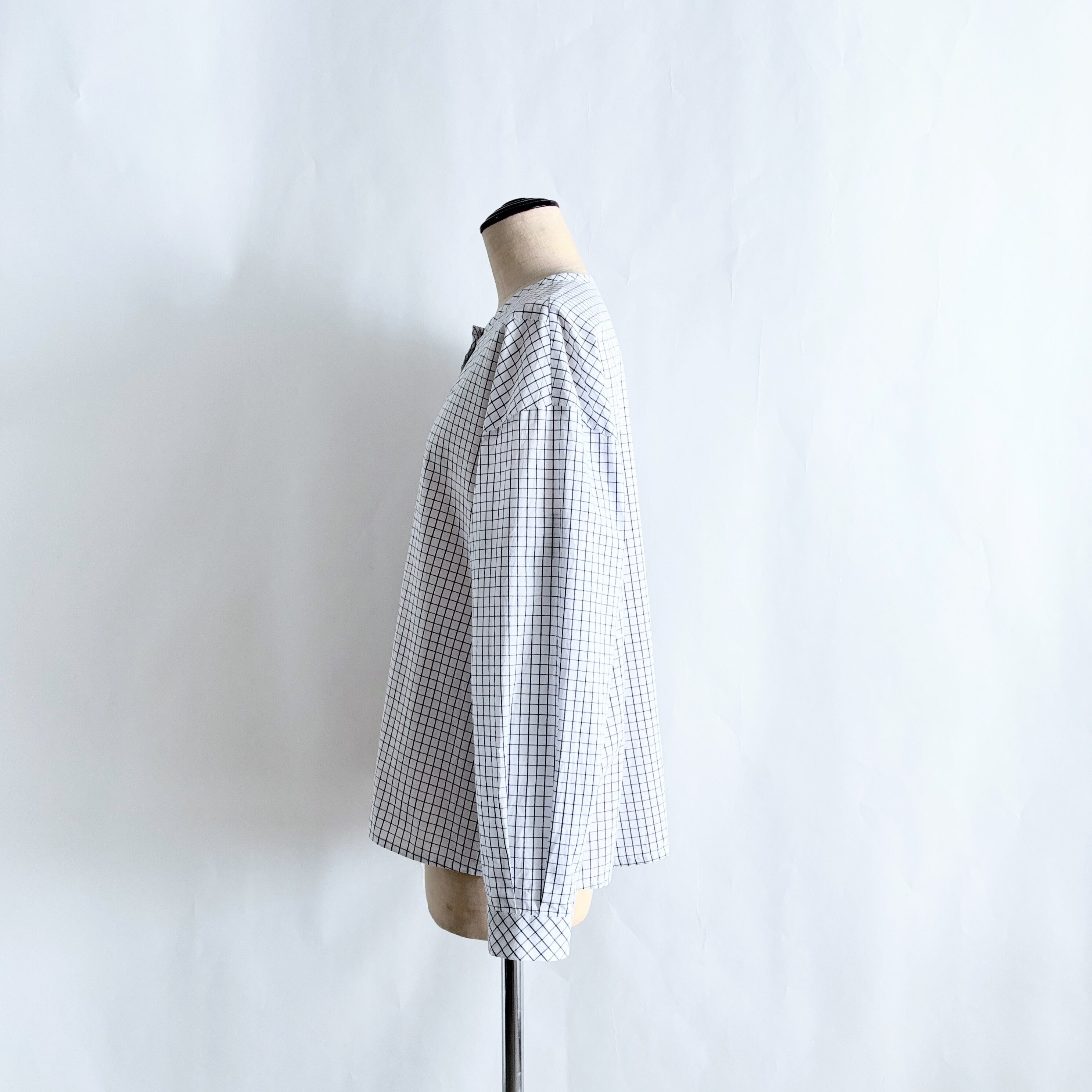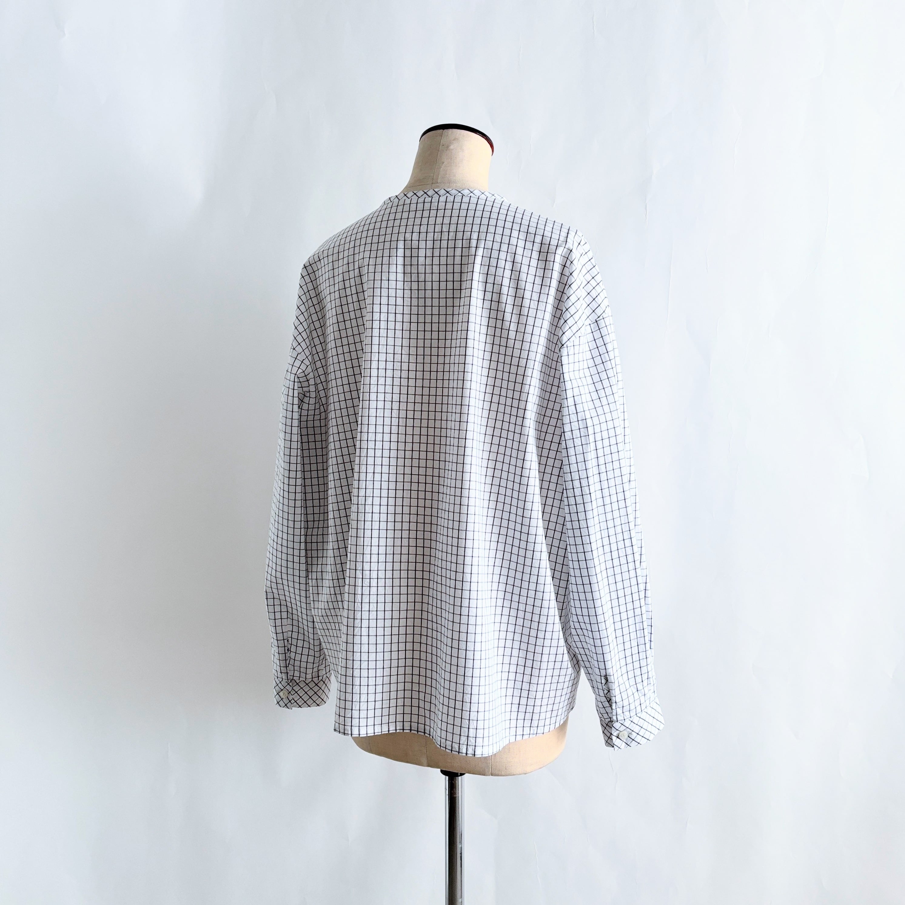 チェック柄を活かしたVバイアスヨークの長袖ブラウスです