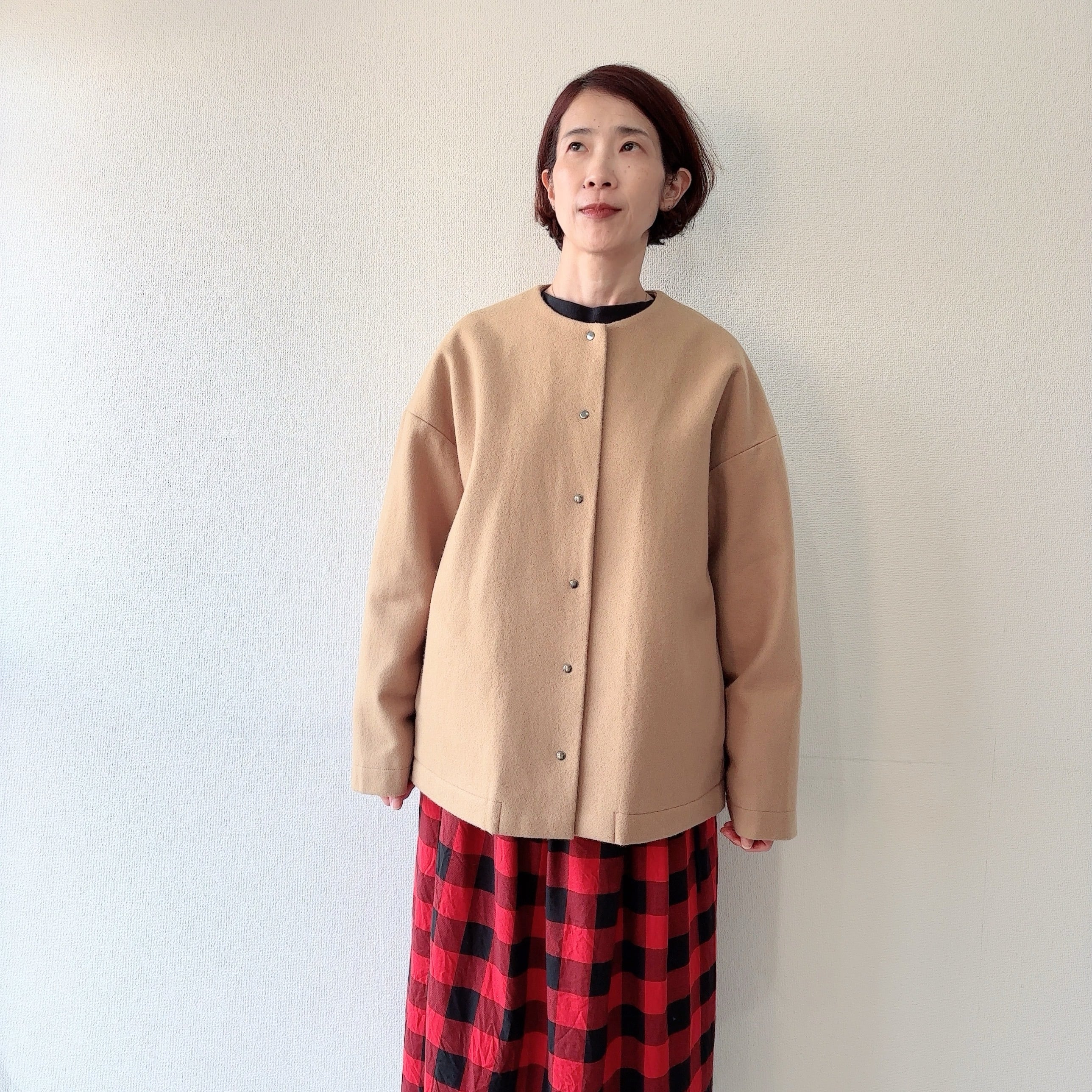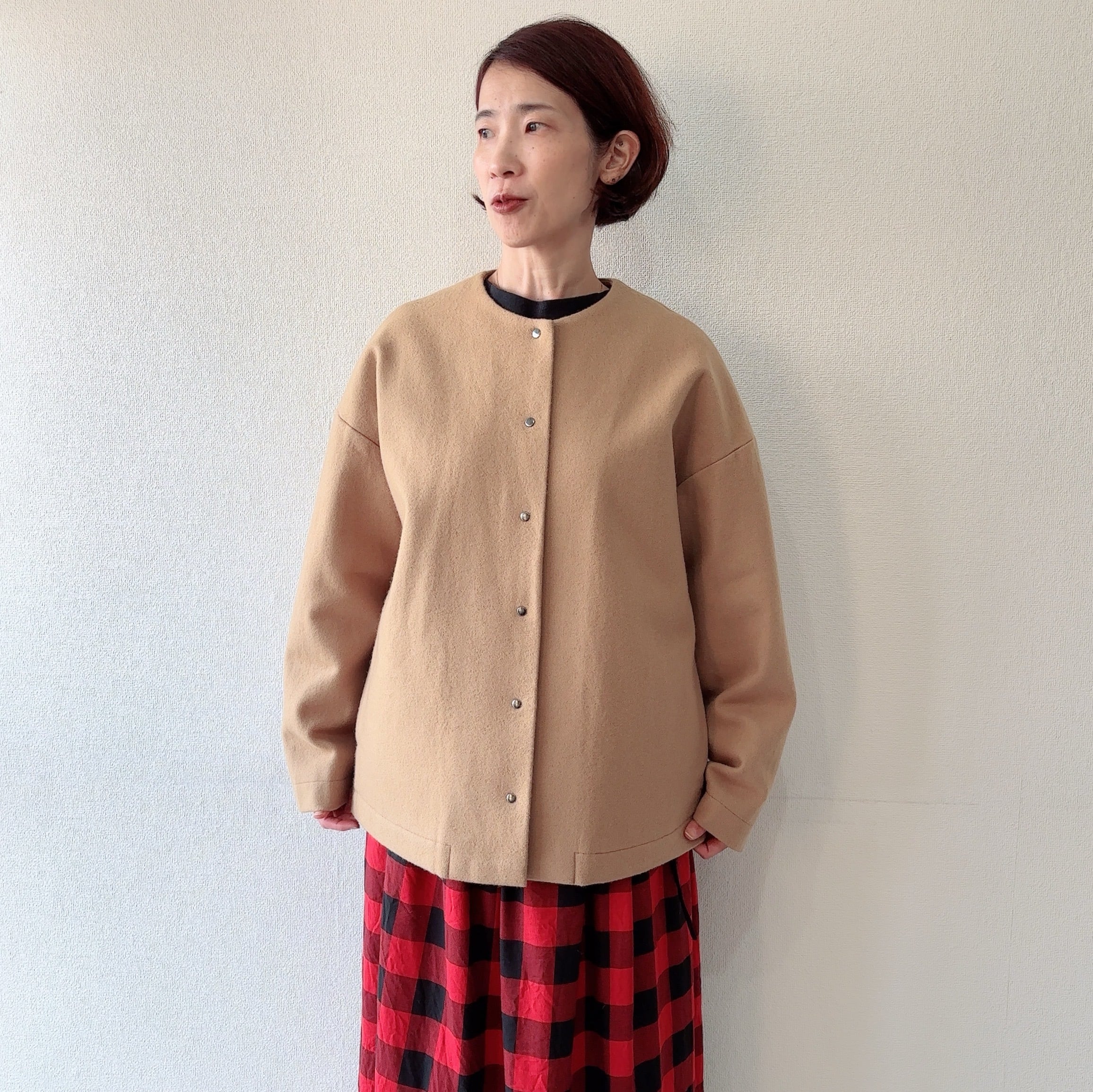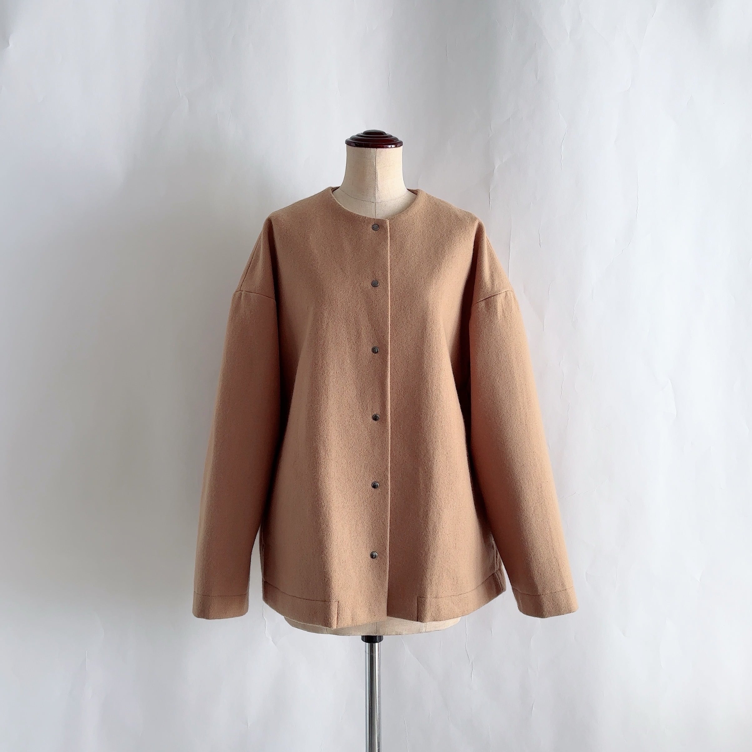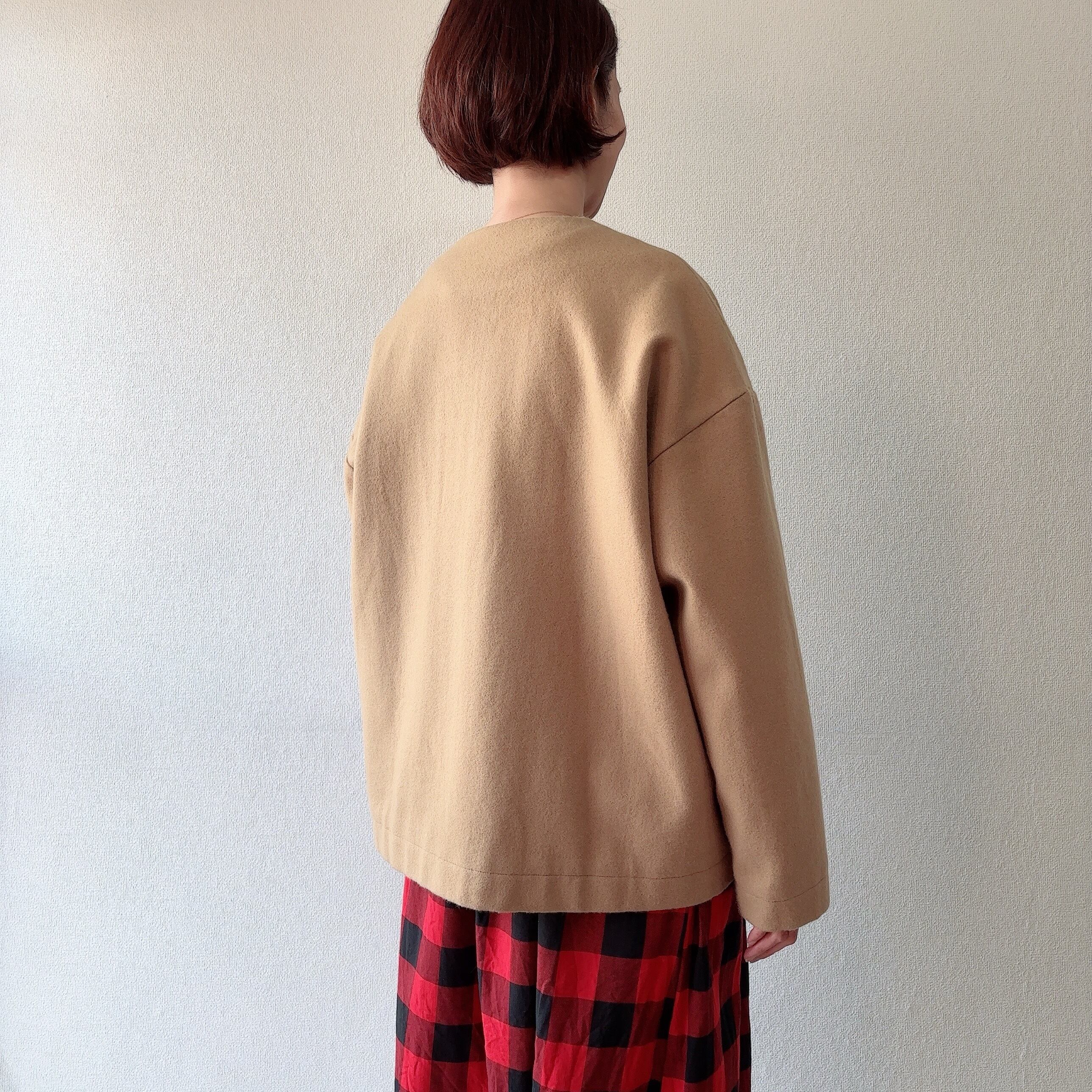 メルトンノーカラーショートコート