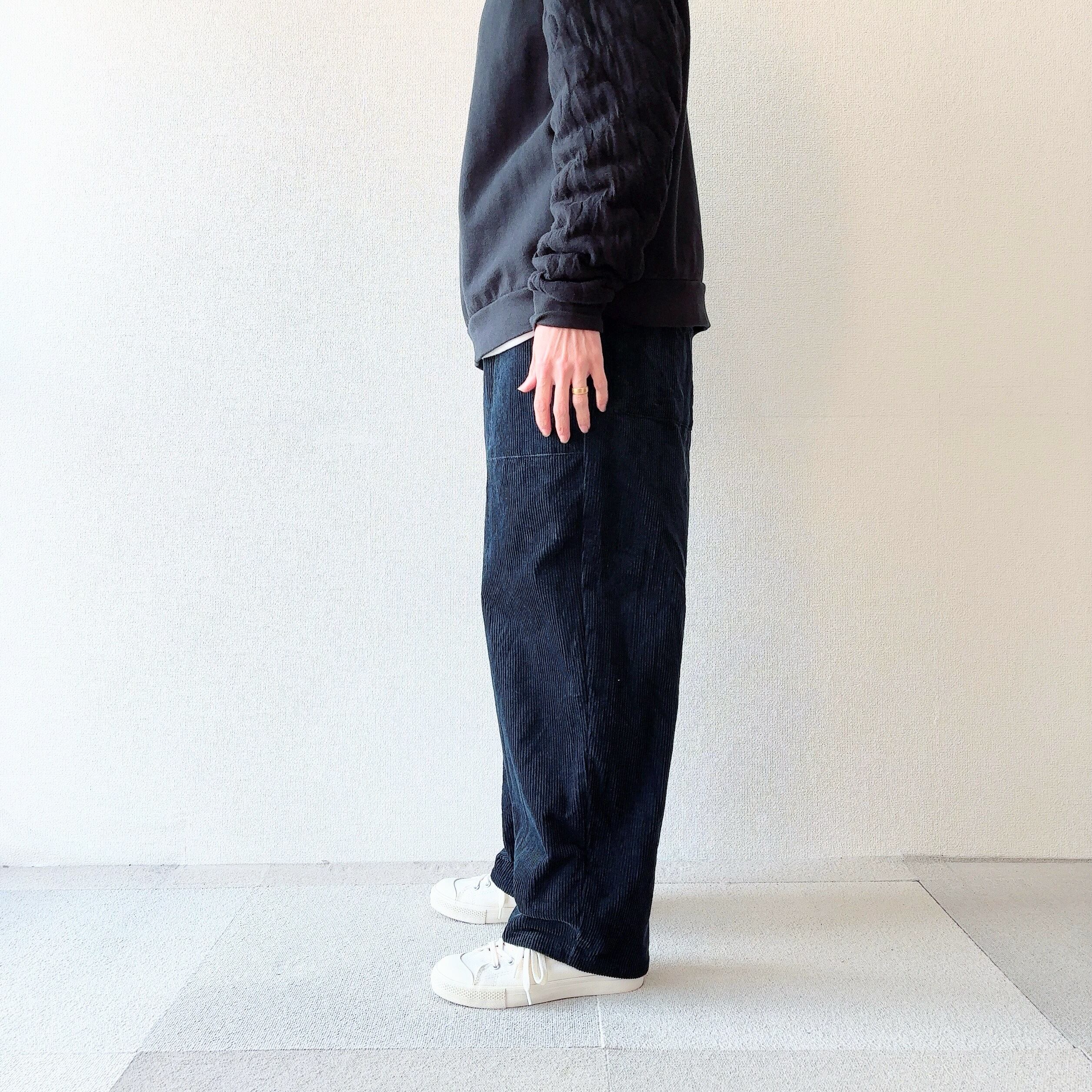 厚地コーデュロイのストレートパンツ